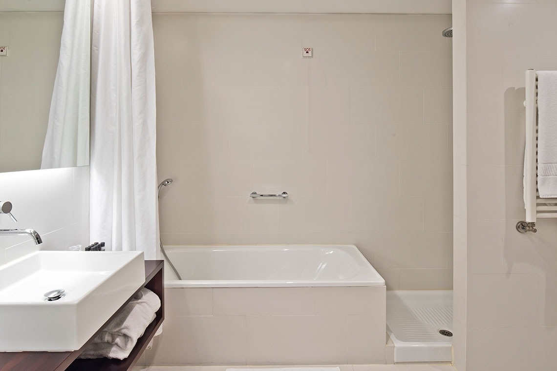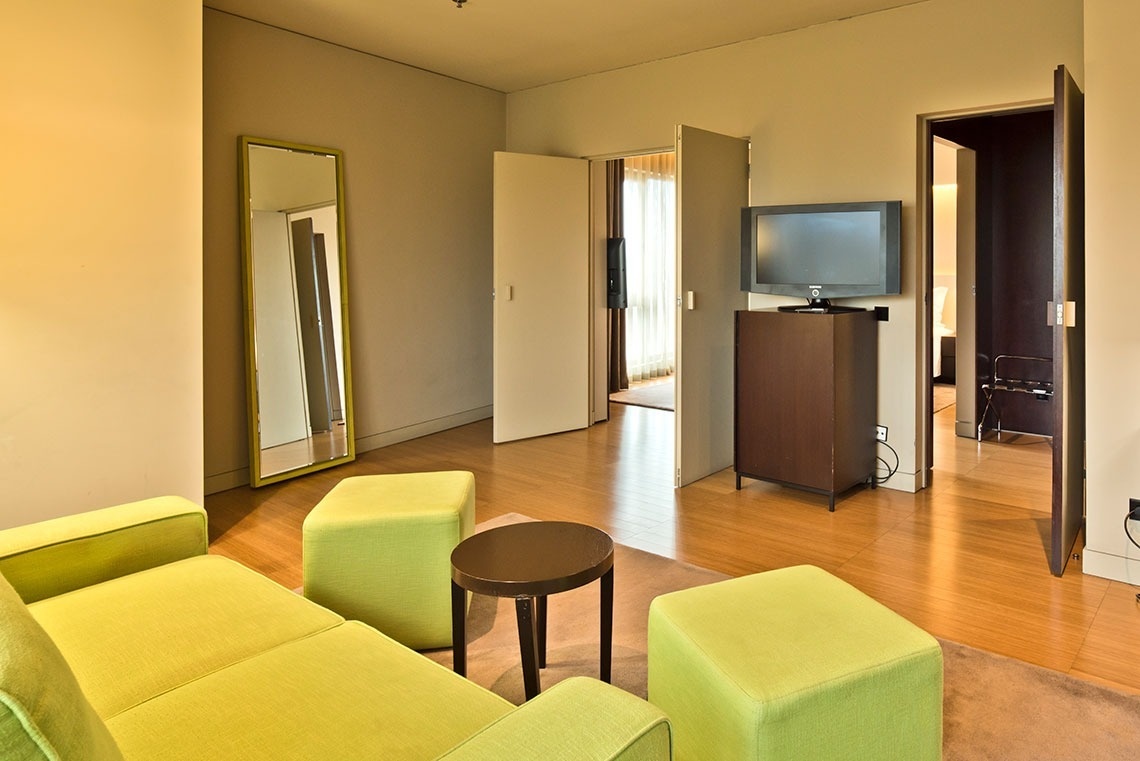 Room with 35m², has a bedroom with a 160x200cm double bed and a separate living area, with LCD TV, desk, air conditioning, Wi-Fi, minibar, window and a private bathroom with bathtub, hairdryer and toiletries.