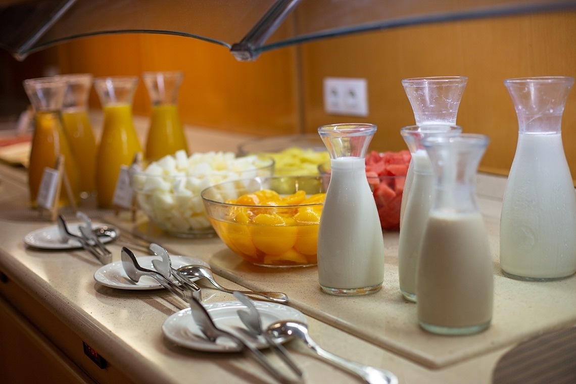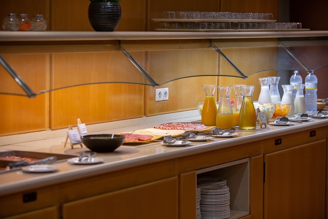 Enjoy our continental breakfast to start your day in the best way. Served buffet-style, it offers a variety of breads, pastries, fruits, cereals, juices, and hot options. Try the delicious fresh juice made from typical Valencian oranges, and don't miss the toast with tomato and olive oil or the Spanish omelet.